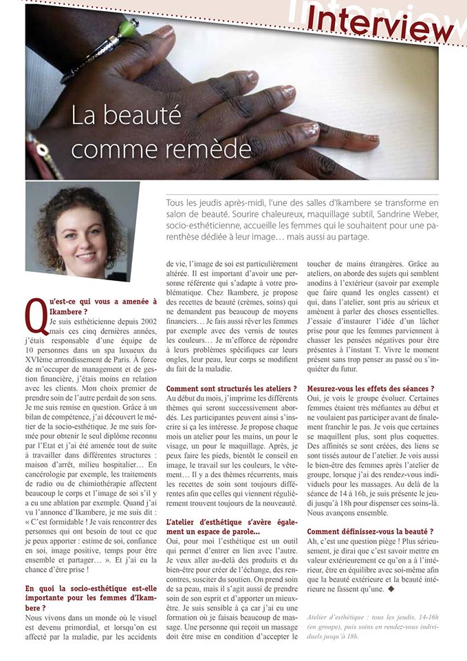 Interview d’une socio-esthéticienne intervenant à l’association Ikambere (93)